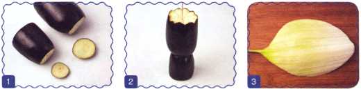 2. Соединить срезы обеих частей и нанизать их на шпажку это «вазочка». Вырезать на ней фигурный край. Выступающий конец шпажки отломить или обрезать.