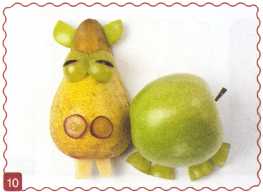 10. Выложить к голове туловище зеленое яблоко и ножки.