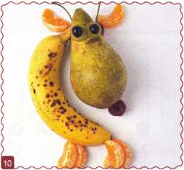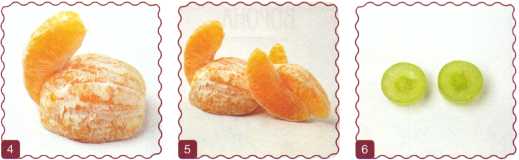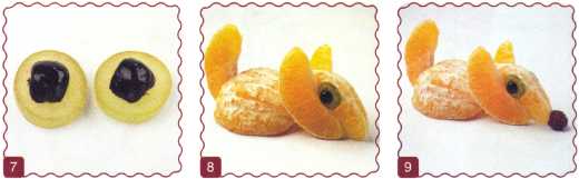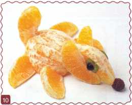 10. Выложить 2 пары ножек и ушки дольки мандарина.