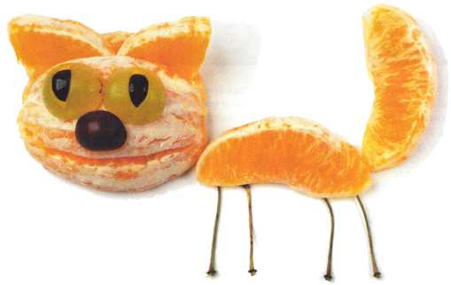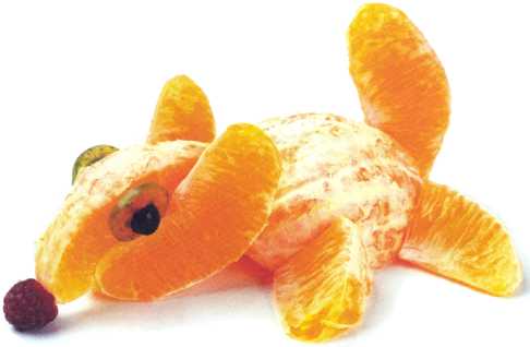 10. 2 дольки апельсина разрезать пополам это ножки. Выложить их к туловищу белочки.