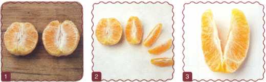 1. Очистить апельсин и разделить пополам. Одна из половинок это туловище.