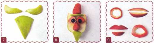 9. Из срезанного бочка красного яблока вырезать разные варианты губ.