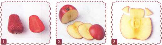 2. От красного яблока отрезать бочок и 2 ломтика.