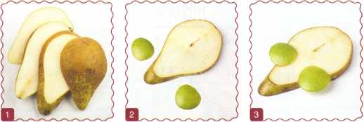 3. Разрезать ягоду винограда пополам и выложить на туловище лапки.