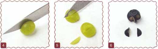 8. От целой ягоды винограда отрезать 2 кружочка.