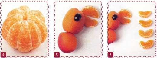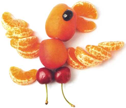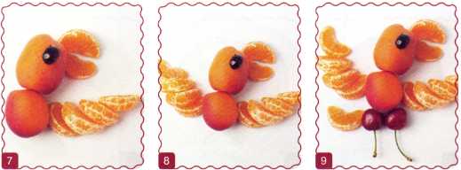 9. Приставить ножки 2 ягоды черешни и хвост дольку мандарина.