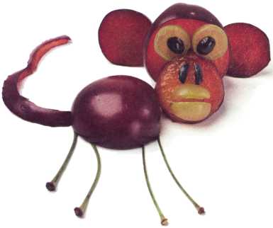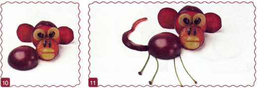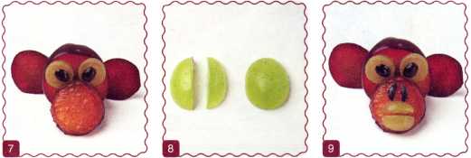 9. Выложить виноград в виде рта обезьянки.