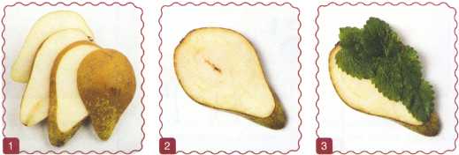1. Отрезать от груши бочок и 1 ломтик.