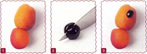 1. Абрикосы выложить в виде головы и туловища.