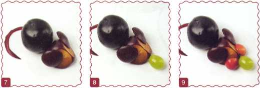 8. Уложить мордочку ягоду винограда.