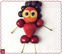 8. К шее приставить целую сливу туловище, ноги и хвост из половинок винограда.