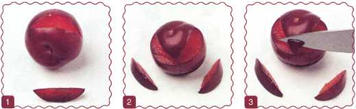 1. Сливу положить на бочок и вырезать секцию это рот.