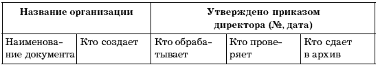 порядок движения каждого документа между отделами организации и крайний срок предоставления документов конечному потребителю информации (например, бухгалтерии);