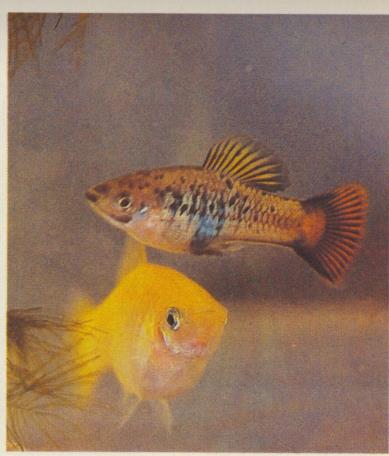 Живородящие рыбки: на верхних снимках пецилии, на нижних снимках меченосцы