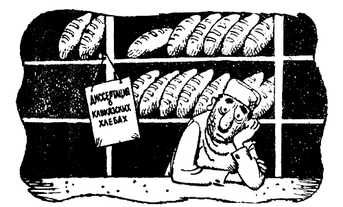 Дело в том, что Мамед любит свой национальный хлеб чурек, а Ираклий не может жить без лаваша. Но хлебные магазины, расположенные в их городах, хлебозаводы и даже целые министерства хлебопродуктов, находящиеся в их республиках, эту субъективную прихоть удовлетворить не могут. Поэтому Мамед и Ираклий каждую неделю отправляются за хлебом. И довольно-таки далеко. Пока туда, пока обратно день проходит. А то и больше. Жалко все-таки.