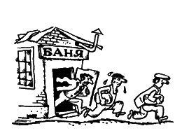 Затем благодушные опекуны банного хозяйства обязательно заметят, что пропускная способность нынешних бань значительно повысилась. Раньше-то в бане располагались чуть ли не на целый день. Тут не только мылись, но и пели, читали стихи, обедали, знакомились, говоря сегодняшним языком, с новыми моделями одежды, играли в нарды и вообще валяли дурака. Сегодня трудящийся не может позволить себе такого затяжного кайфа. Надо же и на производстве когда-то поприсутствовать. На баню он тратит не более часа, включая раздевание и одевание.