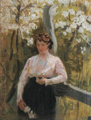 Гармоничное сочетание находящейся в расцвете сил молодой женщины с нежными тонами цветущей черемухи, яркие солнечные блики, пробивающиеся сквозь листву, тонкие светотеневые эффекты пленэра - все это создает обобщенный образ красоты русской женщины, олицетворяющей весну. Не случайно на некоторых выставках это произведение экспонировалось под названием Весна.