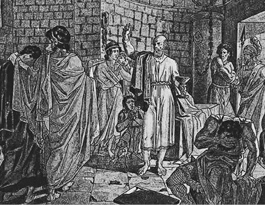 Репродукция с рисунка Тараса Шевченко «Смерть Сократа». 1837 г. Национальный музей Тараса Шевченко. Киев.