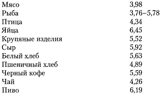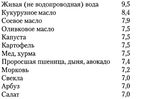 Посмотрите, как разнятся по кислотно-щелочному показателю различные продукты животного и растительного происхождения.