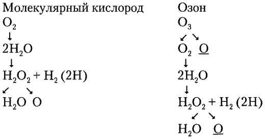 Схема действия (распада, растворения) молекулярного кислорода и озона