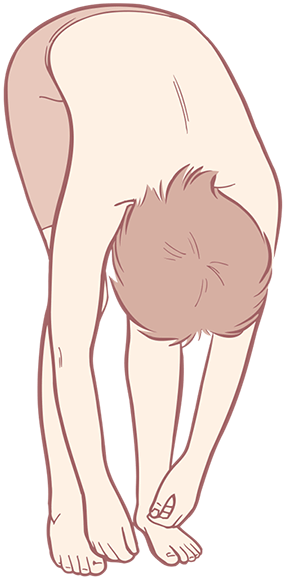 Рис. 3.10. Наклон вперед к прямым ногам соединяет всю Поверхностную Заднюю Линию и создает натяжение по всем «путям» и «станциям». Работа с одной областью, например, с подошвенной фасцией, может повлиять на движение и длину любого другого участка линии. После работы с подошвенной поверхностью правой стопы правая рука свисает ниже