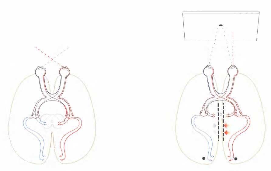 Полушария постоянно обмениваются зрительной информацией, так что в распоряжении каждого из них имеется полная картина видимой части окружающего мира.