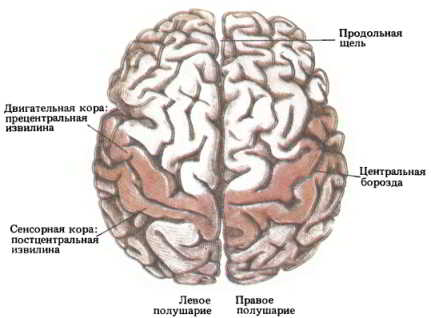 Рис. 21.Большие полушария человеческого мозга (вид сзади и сверху).