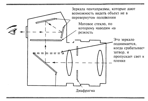 Но основное преимущество аппаратов этого типа в том, что Вы видите истинные границы кадра, точно такие же, как и в поле зрения объектива. Это мощное оружие в руках фотографа! Вы наблюдаете действительное изображение будущего кадра, изменяете его по своему желанию, меняете точку съемки и все время следите за изменениями изображения в своем видоискателе. Теперь Вы никогда уже не «отрежете» голову или ноги своего приятеля, который позирует перед камерой. Конечно, если Вам не хочется насолить ему за что-нибудь. В зеркальных камерах параллакс отсутствует. Для художественной съемки это преимущество неоспоримо. Иногда даже малейшее появление постороннего предмета в кадре сводит на нет все старания.