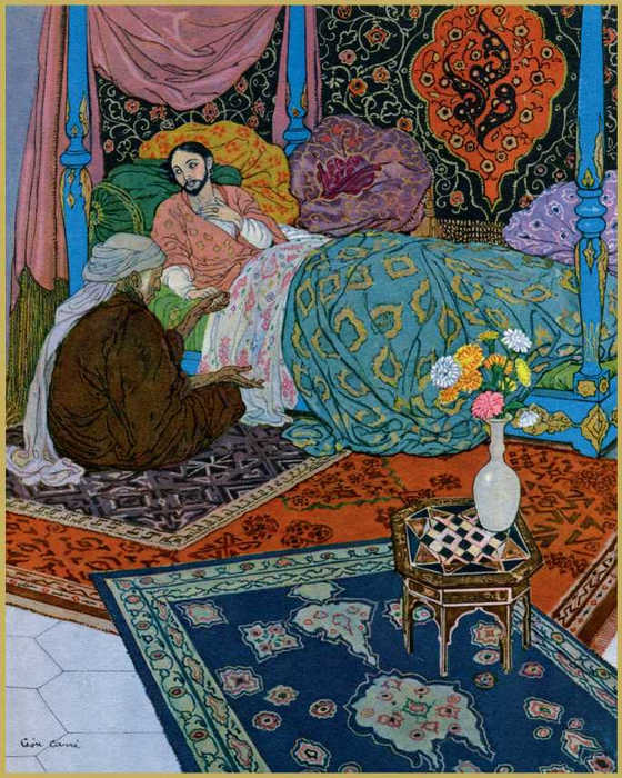 Дитя мое, я знаю причину твоей болезни, но нужно, чтобы ты рассказал мне все подробно. Тогда я сообщил ей все, как было, и она сказала мне: В самом деле, дитя мое, эта молодая девушка дочь багдадского кади, и дом этот его дом. Но знай, что