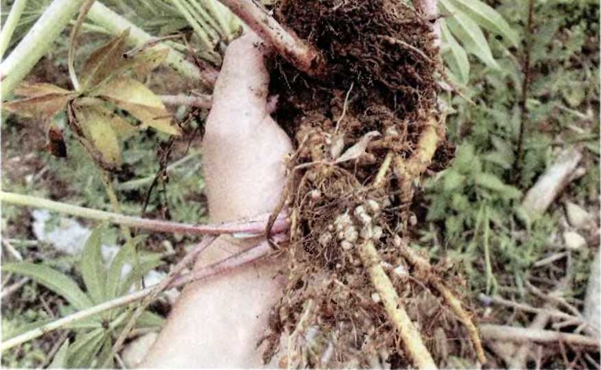 Прикорневые клубеньки люпина видны невооружённым глазом.