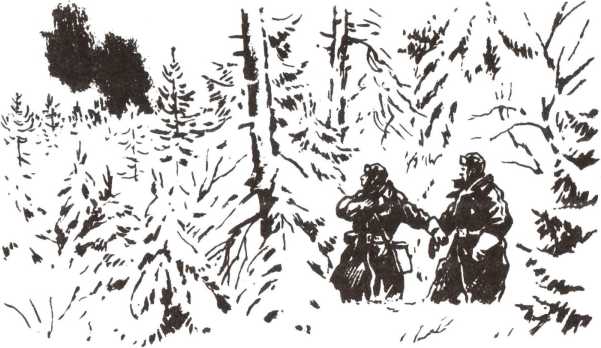 В эту минуту солдаты увидели, что по поляне к ним ползут два человека. Коричневые фонтаны земли возникали то впереди, заслоняя ползущих, то рядом. На некоторое время люди исчезли из виду очевидно, отдыхали в воронке, затем снова принимались ползти след в след, один в затылок другому.