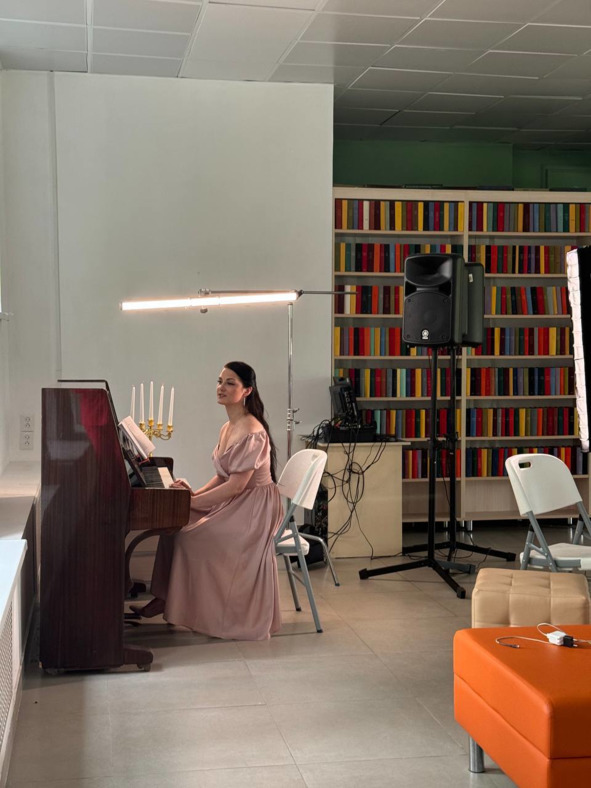 Поэтесса Эльзарэтт-Виктория Кинэвард читает своё стихотворение во время съёмок передачи «Пророки». Передача о современных русских поэтах была записана телерадиокомпанией «Русский мир». Съёмки проводились в июле 2024 год
