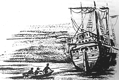 Приготовить винтовки! послышалась команда капитана. Добровольцы, находившиеся на шлюпке уже не могли слышать эту команду. Они молча подходили к совершенно, казалось, безжизненному кораблю. Все быстрее работали веслами. Темнота сгущалась, в душной атмосфере чувствовалась тишина, какая бывает перед бурей. Когда они пристали к левому борту судна, Вильмовскому пришлось зажечь
