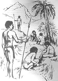 Как только женщины услышали весть, принесенную воинами, они стали работать еще усерднее, чем раньше. Ведь необходимо собрать как можно больше овощей к вечернему пиру. Они быстро заполняли огромные, сплетенные из лиан, корзины коричневато-красными, шероховатыми плодами батата основной пищей туземцев, корневищами таро , сахарным тростником и самыми любимыми у папуасов овощами крупными клубнями растения, носящего название яме или диоскорея . После этого женщины нагрузили корзины небольшими полосатыми тыквами и огурцами, не забыв прихватить и листья табака.