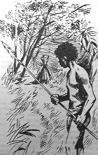 Новицкий не оглядывался назад. Мерным шагом он шел навстречу опасности. Капитану не было известно чувство страха, если дело касалось только его собственной жизни. Вдруг он увидел новое препятствие на пути. Поперек тропинки торчали три копья, остриями направленные к нему.