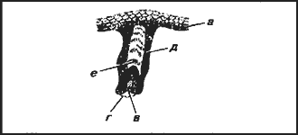 На дне самой сумки развивается волосяной зародыш, который повторяет контурами сосочек кожи, формы обычно яйцевидной или грибообразной, сходен с ним по строению клеток. связан с соединительной тканью волосяной сумки. И зародыш тоже из волокнистой соединительной ткани, между ее клетками попадаются единичные пигментные зерна и жировые шарики. К зародышу подходят кровеносные сосуды, но не нервные окончания.