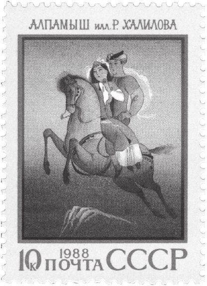 Халилов Р. «Алпамыш», узбекский эпос. Почтовая марка из серии «Эпические национальные поэмы в СССР». 1988 г. СССР