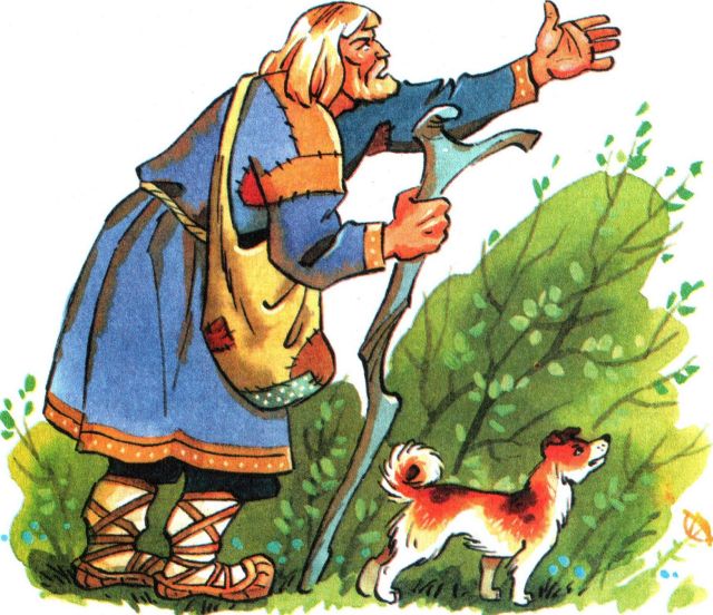 Ох ты, старчище Иванище, говорит Илья Муромец, ведь ты дороднее да сильнее меня, только смелости да ухватки нет у тебя! Ты снимай платье каличье, поменяемся на время мы одёжею.