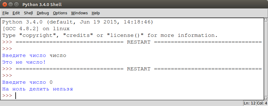 Возьмем в качестве примера следующий скрипт. Программа спрашивает у пользователя число и делит сто на это число: