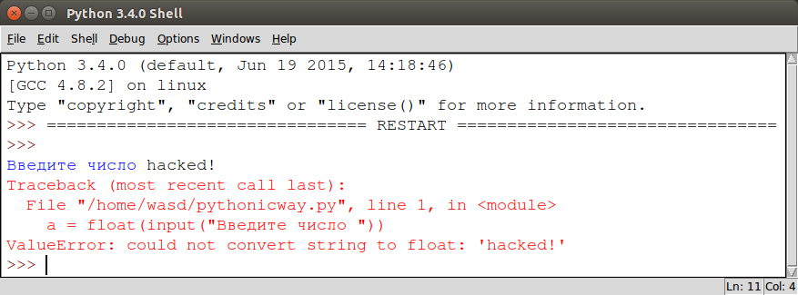 вот что случится, если кто-то специально попытается поломать программу.