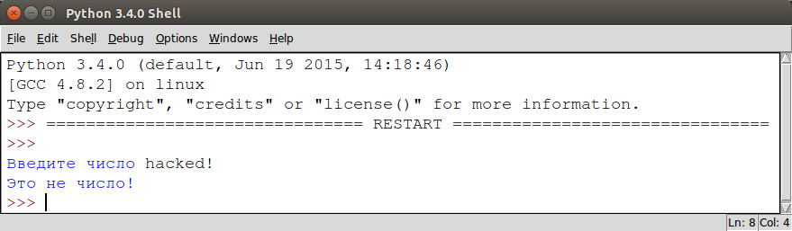 4 | print ("Это не число!")