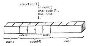 На основании этого оператора компилятор создаст переменную libry. Согласно плану, установленному шаблоном book, он выделяет память для символьного массива, состоящего из MAXTIT-элементов, для символьного массива из MAXAUT-элементов и для переменной типа float. Эта память объединяется под именем libry. (В следующем разделе мы расскажем, как ее "разъединить", если понадобится.)