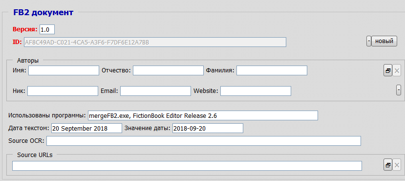 Жанров может быть несколько, но увлекаться не стоит. Следующий раздел «Авторы». Склеивая тексты, mergeFB2 педантично заносит в этот раздел авторов произведений. И все бы хорошо, но программа не признает соавторов, и если ей встретится, например, рассказ Стругацких, она добавит в «Авторы» только того из братьев, который в файле рассказа записан первым. Соавтора придется добавить вам самим. Смотрим дальше.