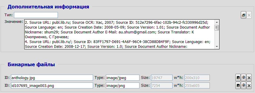 В «Дополнительную информацию» mergeFB2 запихивает некоторые данные, извлеченные из исходных файлов. Полезность этих сведений сомнительна, но нам не мешает, пускай будут.