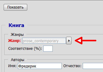VI. Допиливание output файлаКонечно, надо пилить! Паниковский Итак, ошибки исправлены (если они были). Займемся шлифовкой output файла.1. Информация о книге Начнем со страницы информации (синяя кнопка на панели FBE). Выберем нужный жанр из списка:
