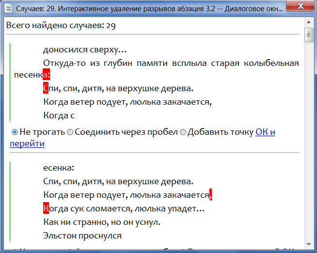 6. Чистка Интерактивная ликвидация разрывов абзацев