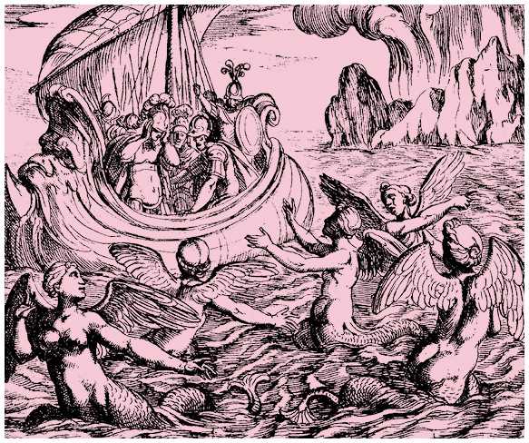 Сирены Прозерпины, превращенные в птиц. Гравюра Антонио Темпесты. 1606 г.