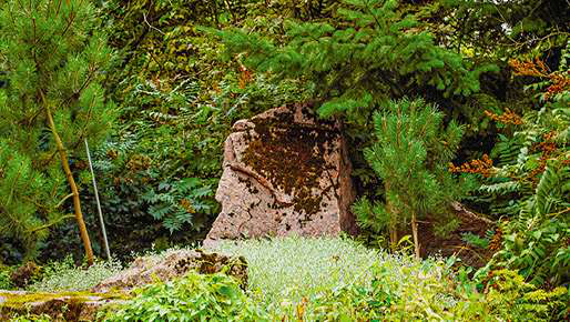 Рядом с папоротниками стоит замшелый камень. Я с первого же дня увидела в нем профиль бородатого мужчины в шлеме. Не знаю, замечали ли этот профиль до меня, но теперь, когда я спрашиваю группу, видят ли они его, мне отвечают единодушным «да».Вот и поговорим о чем-то очень шотландском и очень кровавом.Я не слыхал рассказов Оссиана,Не пробовал старинного вина;Зачем же мне мерещится поляна,Шотландии кровавая луна?Прямо от камня и до самой дорожки мы видим темно-зеленую массу. Это все тис. Как легко понять, в Ботаническом саду МГУ сложно встретить дерево старше семидесяти лет, так что этому тису максимум семьдесят. По меркам тисов он даже не подросток, а ребенок. И пока мы идем к нему, я предлагаю группе угадать, каков же возраст старейшего в мире живого тиса.