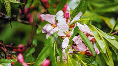 Огромное пространство занимает кавказская сосна Коха с длинными иглами. Напротив, по другую сторону тропы, от нее отходит еще одна дорожка к кустам миндаля.