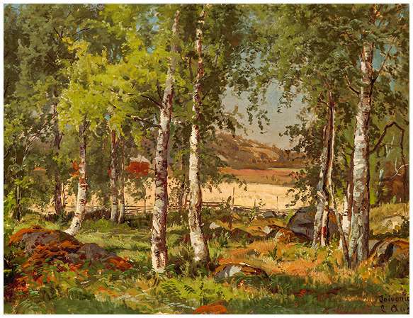 Пейзаж с березовой рощей и ржаным полем. Ялмар Мунстеръелм, 1876 г.